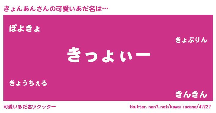 | 男性向けラノベタイトル風あだ名 | 『きょんあんに滅ぼされるだけの簡単なお仕事です』 |