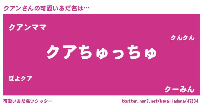 | ヘコむあだ名 | 『クアン(苦笑)』『クアもー』 |