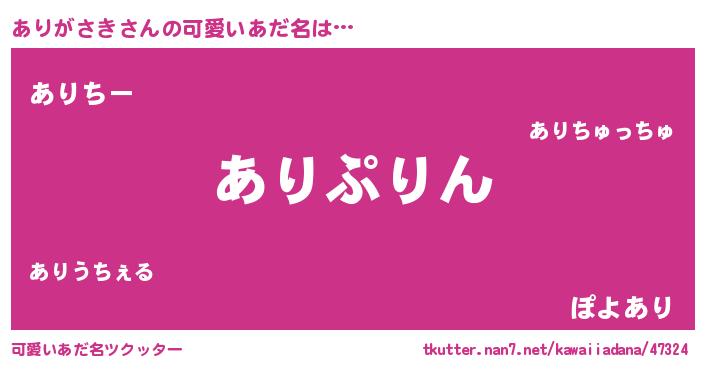 | 男性向けラノベタイトル風あだ名 | 『転生したらありがさきだった件』 |