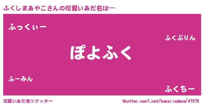 | ポケモン風あだ名 | 『フークイ』『ヒフクシマアヤコ』 |