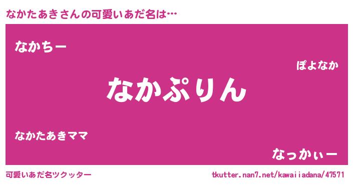 | 男性向けラノベタイトル風あだ名 | 『転生したらなかたあきだった件』 |