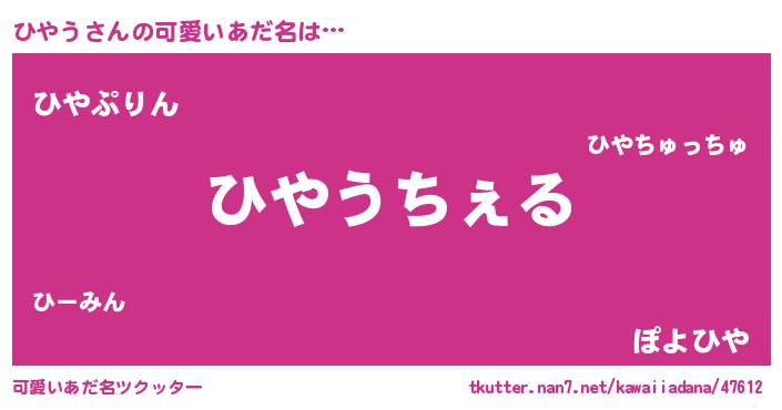 | 恥ずかしいあだ名 | 『ヒヤウデラックス』『ひやっちょ』 |