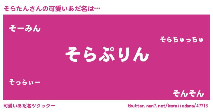 | 恥ずかしいあだ名 | 『プリティーそらたん』『ソラリンリン』 |