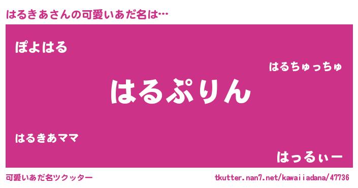 | 男性向けラノベタイトル風あだ名 | 『はるきあに滅ぼされるだけの簡単なお仕事です』 |