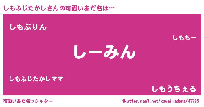 | ヘコむあだ名 | 『酢こんぶ』『しもふじたかし(笑)』 |