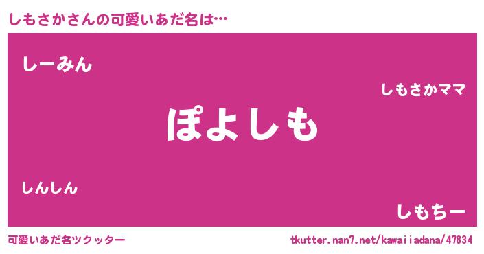 | 男性向けラノベタイトル風あだ名 | 『この素晴らしい世界にしもさかを!』 |