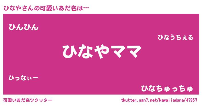 | ヘコむあだ名 | 『ひなや(震え声)』『ひなもー』 |