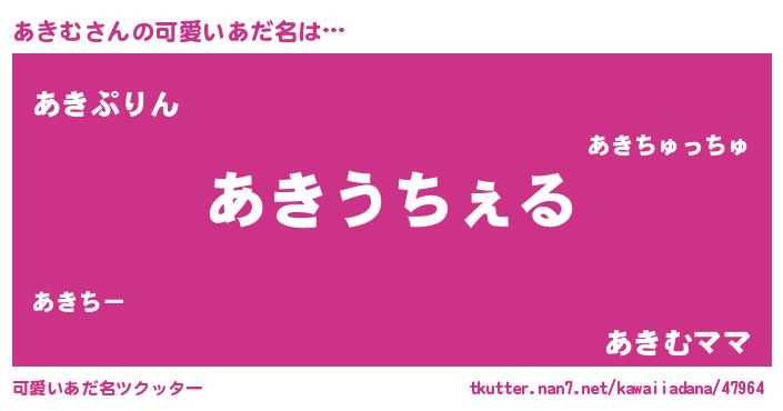 | ヘコむあだ名 | 『あきむ(苦笑)』『豆乳』『あきもー』 |