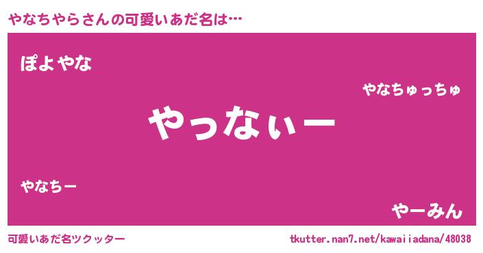 | 男性向けラノベタイトル風あだ名 | 『やなちやらの嫁は女の子じゃないと思った?』 |