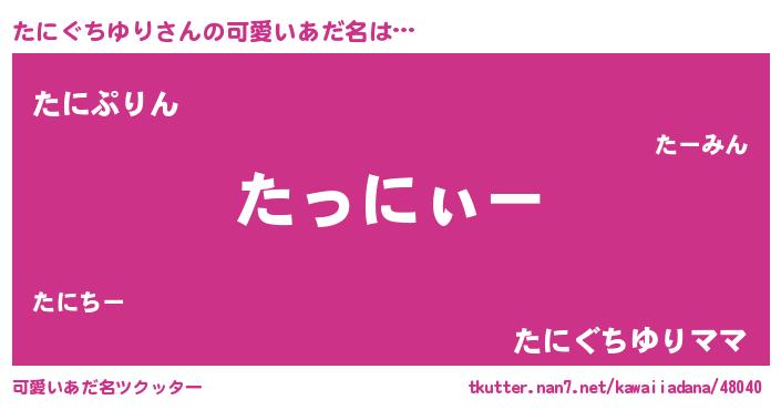 | ポケモン風あだ名 | 『ヒタニグチユリ』『タニキング』 |