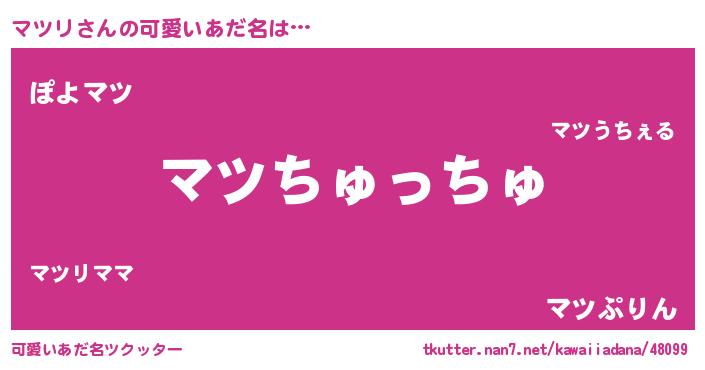 | ヘコむあだ名 | 『マツリ(爆)』『豆乳』『マツにゅー』 |
