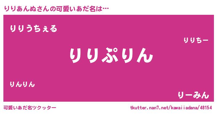 | 男性向けラノベタイトル風あだ名 | 『転生したらりりあんぬだった件』 |