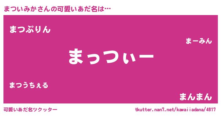 | 意味不明あだ名 | 『とにかく怪しいまついみか』 |