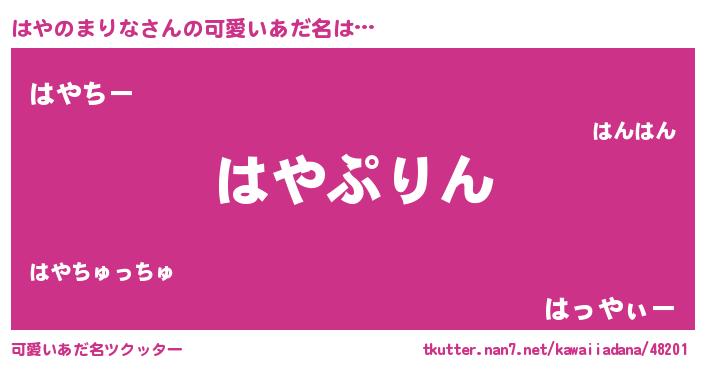 | 男性向けラノベタイトル風あだ名 | 『ハヤノマリナスレイヤー』 |