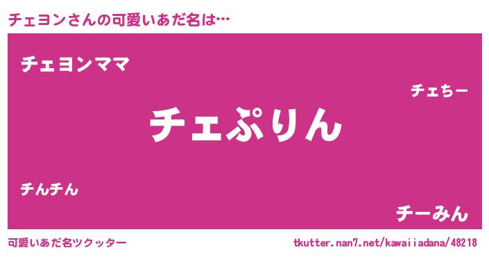 | 男性向けラノベタイトル風あだ名 | 『チェヨン~年齢イコール彼女いない歴の魔法使い~』 |
