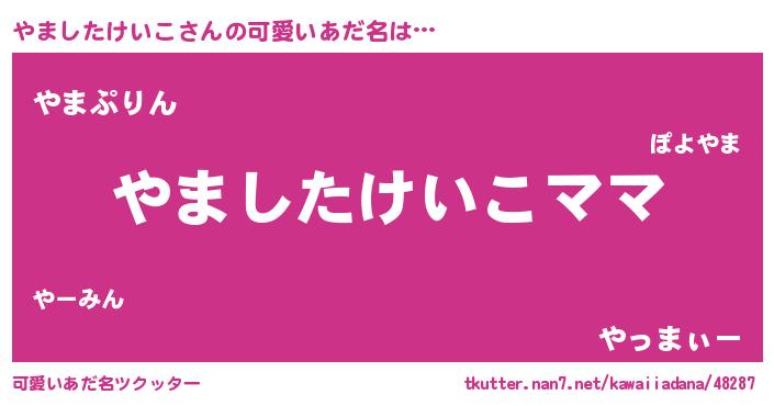 | ヘコむあだ名 | 『やましたけいこ(苦笑)』『やまっぺ』 |