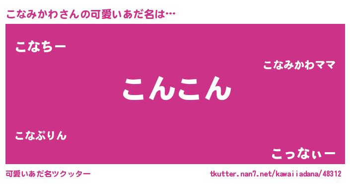 | 女子向けラノベタイトル風あだ名 | 『こなみかわ姫と円卓の騎士』 |
