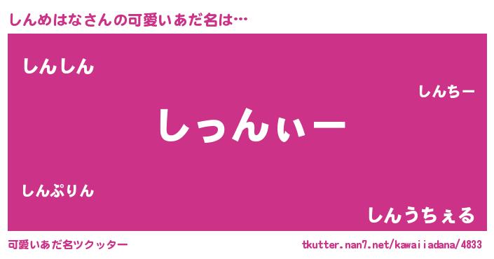 | ポケモン風あだ名 | 『ヒシンメハナ』『シンチュウ』 |