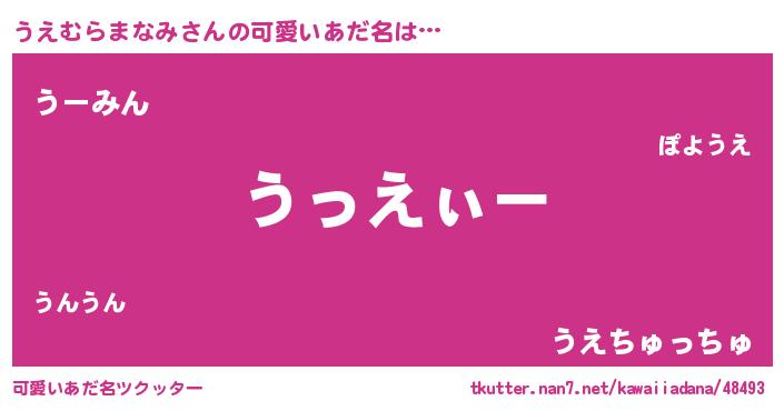 | 意味不明あだ名 | 『とにかく怪しいうえむらまなみ』 |