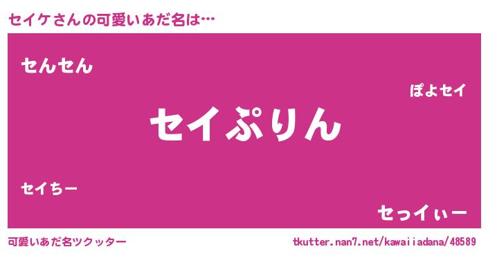 | 男性向けラノベタイトル風あだ名 | 『セイケ~年齢イコール彼女いない歴の魔法使い~』 |