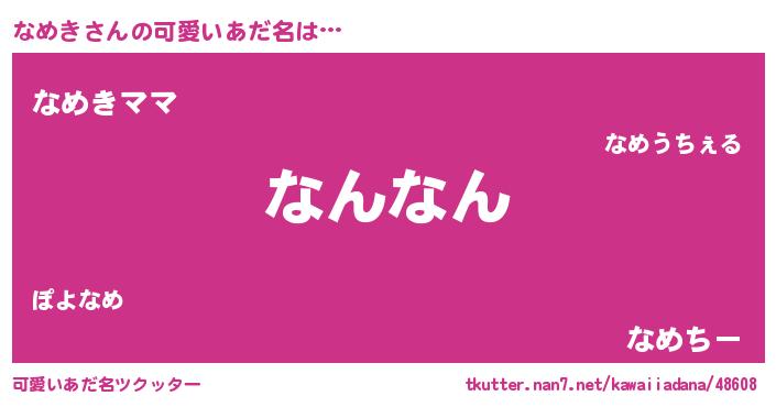 | 女子向けラノベタイトル風あだ名 | 『(仮)なめきのやんごとなき事情』 |