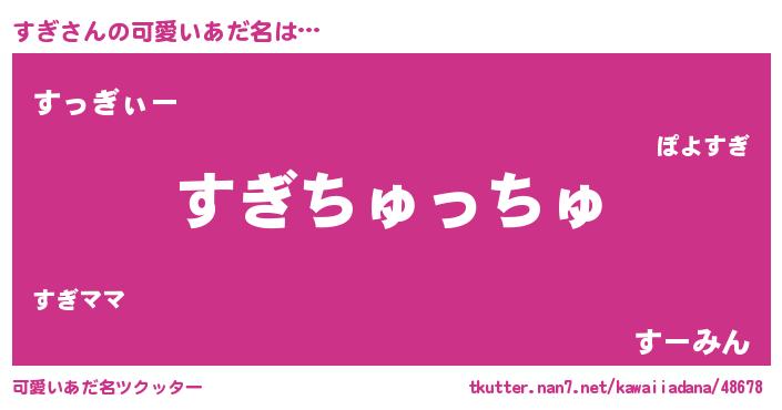 | 料理風あだ名 | 『すぎのトマト煮』『すぎの豆乳スープ』 |