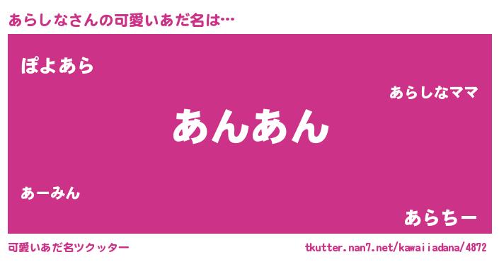| 恥ずかしいあだ名 | 『プリティーあらしな』『あらっちょ』 |