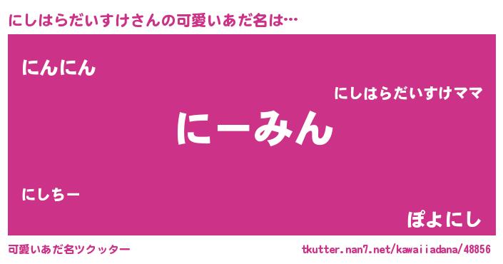 | ヘコむあだ名 | 『にしふぇ~』『にしはらだいすけ(遠い目)』 |