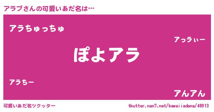 | ヘコむあだ名 | 『アラもー』『アラっぺ』『なまこ酢』 |