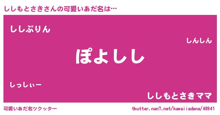 | ヒーロー風カッコイイあだ名 | 『仮面シシダー』『ネオシシモトサキ』 |