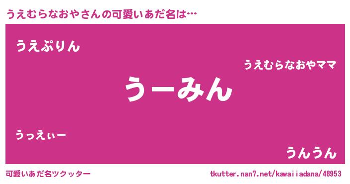 | ヘコむあだ名 | 『うえもー』『うえむらなおや(笑)』 |