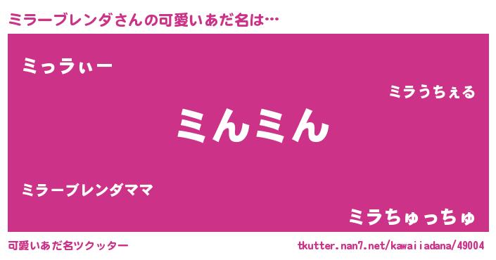 | ヘコむあだ名 | 『ミラっふぃ~』『ミラっちょ』 |