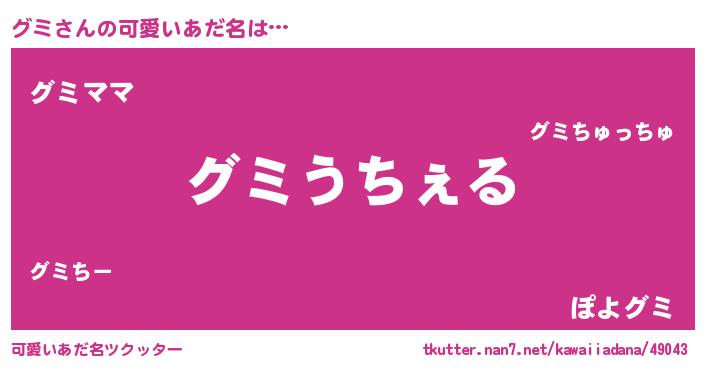 | 恥ずかしいあだ名 | 『グミデラックス』『グミちん』 |