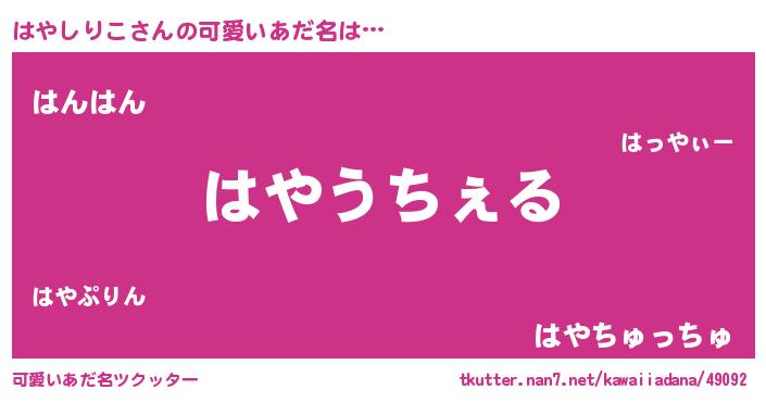 | ヘコむあだ名 | 『はやにー』『はやぷりん』 |
