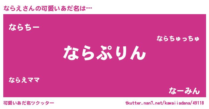 | 恥ずかしいあだ名 | 『ならっちょ』『ボンバーヘッドなら』 |