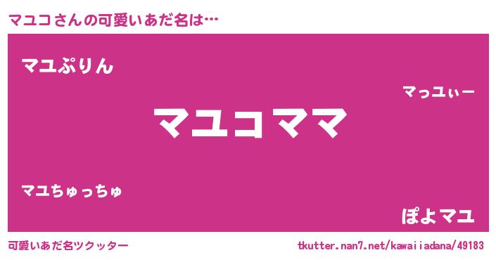 | 男性向けラノベタイトル風あだ名 | 『マユコという概念が存在しない退屈な世界 』 |
