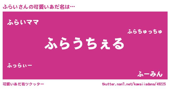 | 意味不明あだ名 | 『自称ふらい』『永久保存ふらい』 |