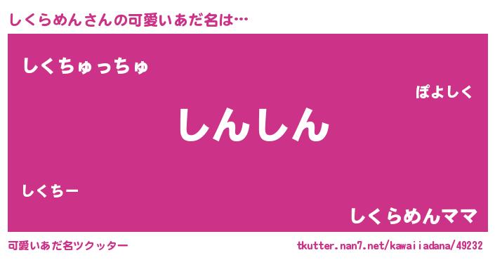 | ヘコむあだ名 | 『しくにー』『しくらめん(爆)』 |