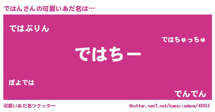 | 恥ずかしいあだ名 | 『ではっちょ』『プリティーではん』 |