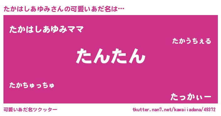 | ヘコむあだ名 | 『たかふぇ~』『たかはしあゆみ(笑)』 |