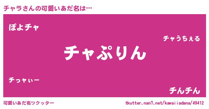 | ヘコむあだ名 | 『チャふぇ~』『チャっぺ』『豆乳』 |