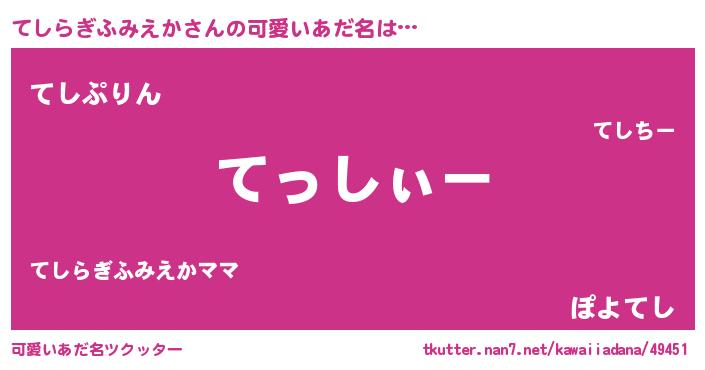 | 男性向けラノベタイトル風あだ名 | 『てしらぎふみえかの嫁は女の子じゃないと思った?』 |