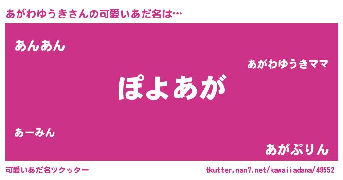 | ヘコむあだ名 | 『あがふぇ~』『あがわゆうき(遠い目)』 |