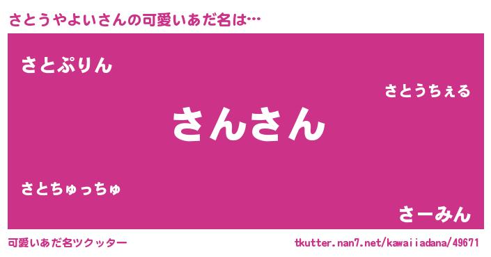 | ヒーロー風カッコイイあだ名 | 『スーパーサトウヤヨイ』『仮面サトダー』 |