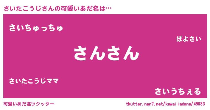 | 恥ずかしいあだ名 | 『プリティーさいたこうじ』『さいちん』 |
