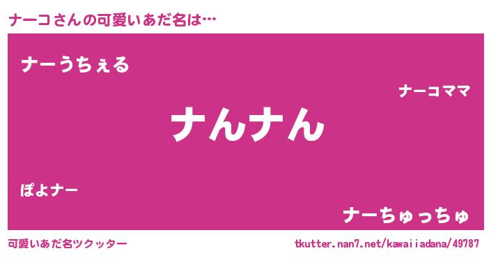| 意味不明あだ名 | 『ペロリンナーコ』『自称ナーコ』 |