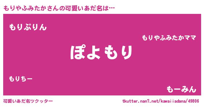 | ヘコむあだ名 | 『もりやふみたか(苦笑)』『酢こんぶ』 |