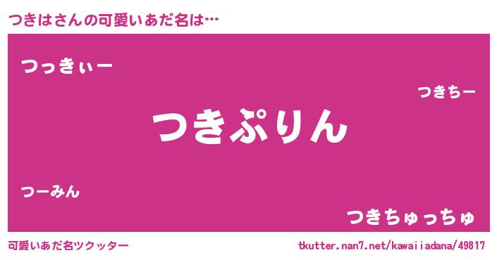 | 男性向けラノベタイトル風あだ名 | 『つきは~年齢イコール彼女いない歴の魔法使い~』 |