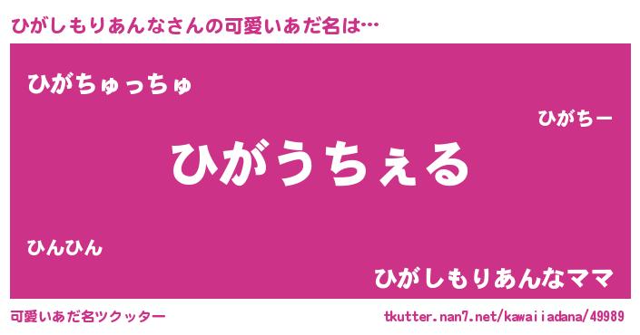 | 意味不明あだ名 | 『自称ひがしもりあんな』 |