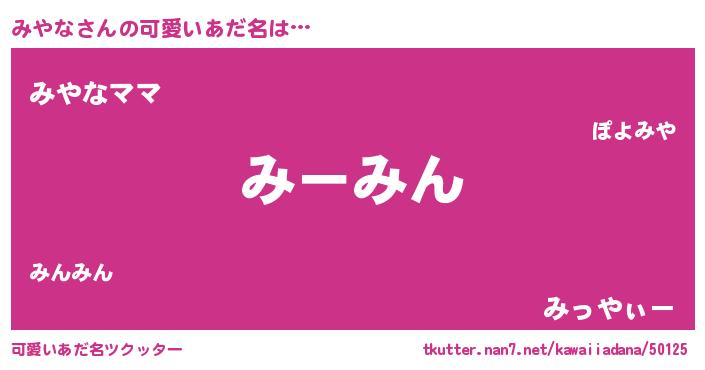 | ヘコむあだ名 | 『みやな(笑)』『みやを』『みやにー』 |